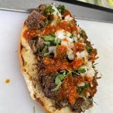 Deliciosa torta de suadero y longaniza en telera de tamaño normal