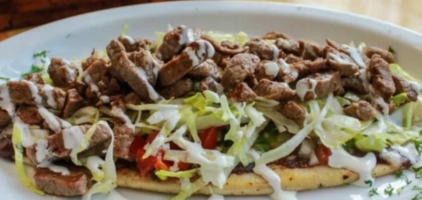 Exquisita gringa de suadero, longaniza y queso oaxaca en doble tortilla de harina.
