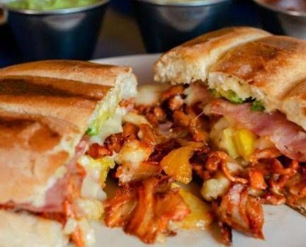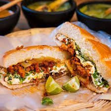 Sabrosa torta de carne al pastor en telera de tanto y medio