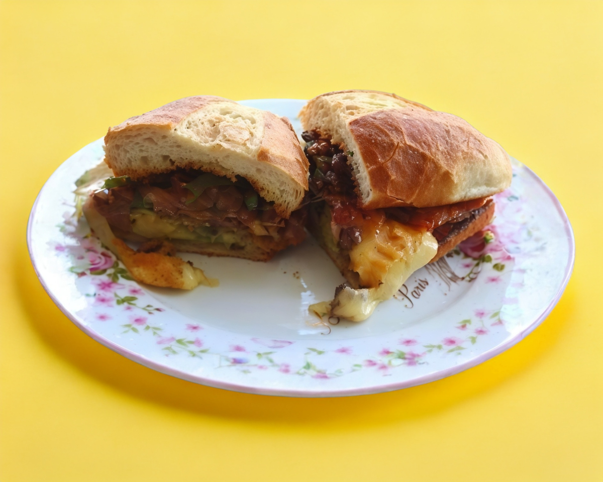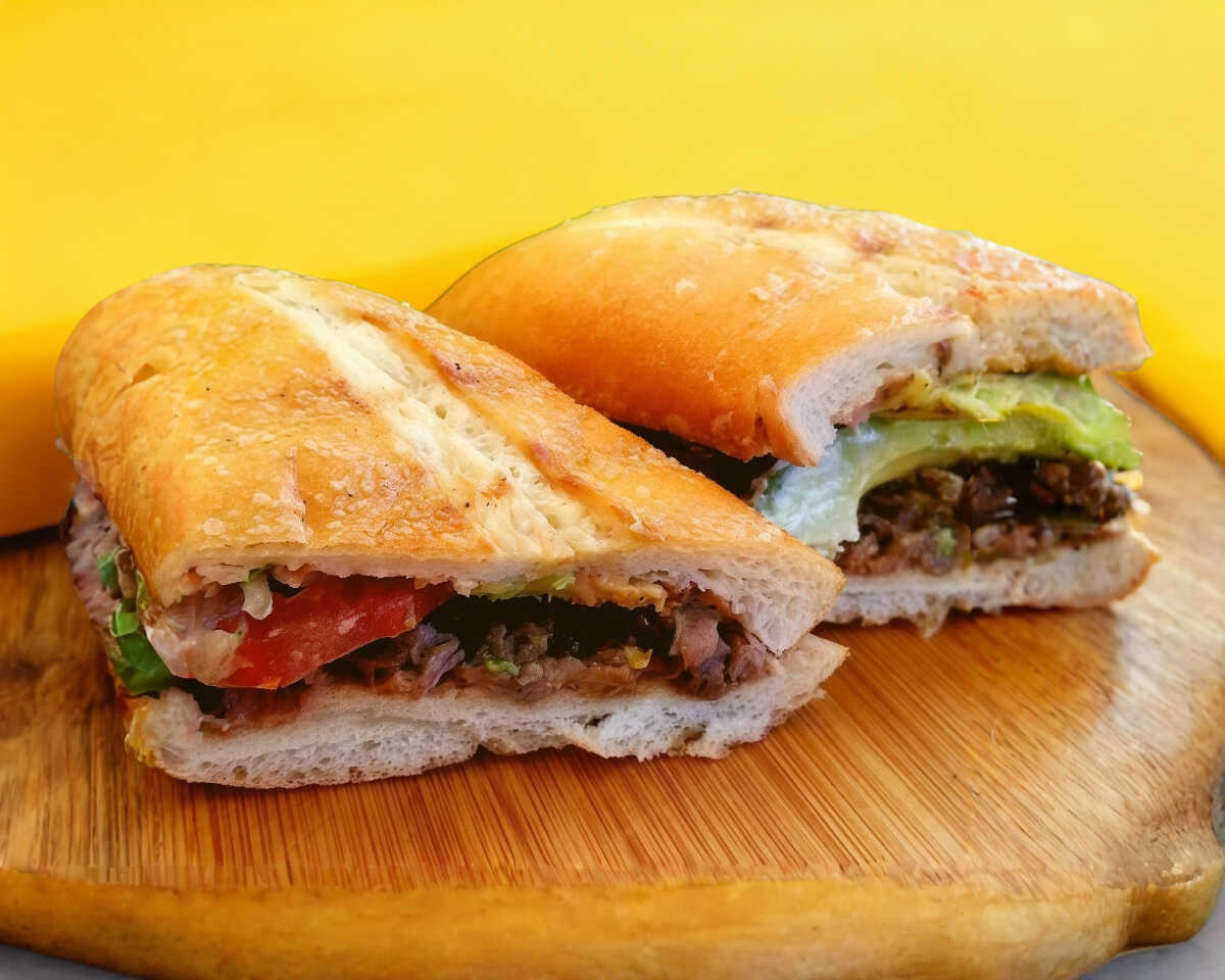 Deliciosa Torta de bistek de puerco con queso gratinado oaxaca