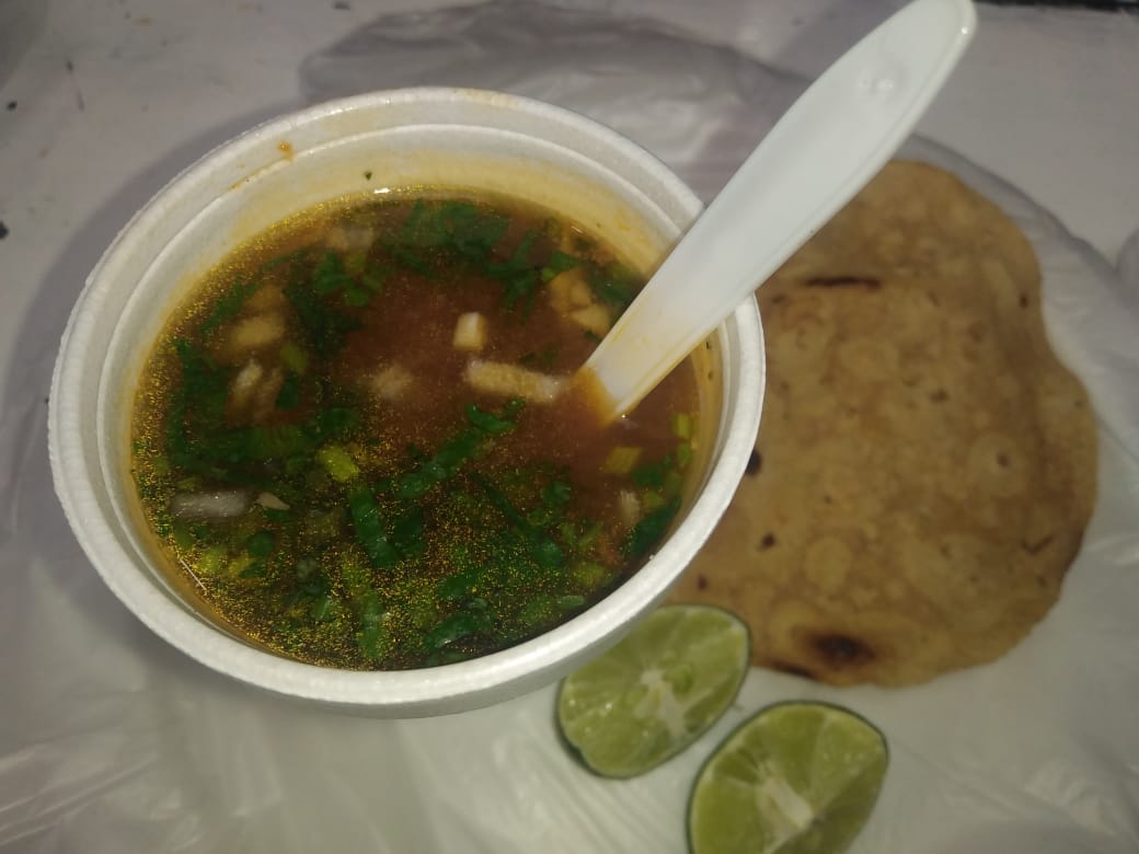 Medio plato de birria servido con 150 g de carne.