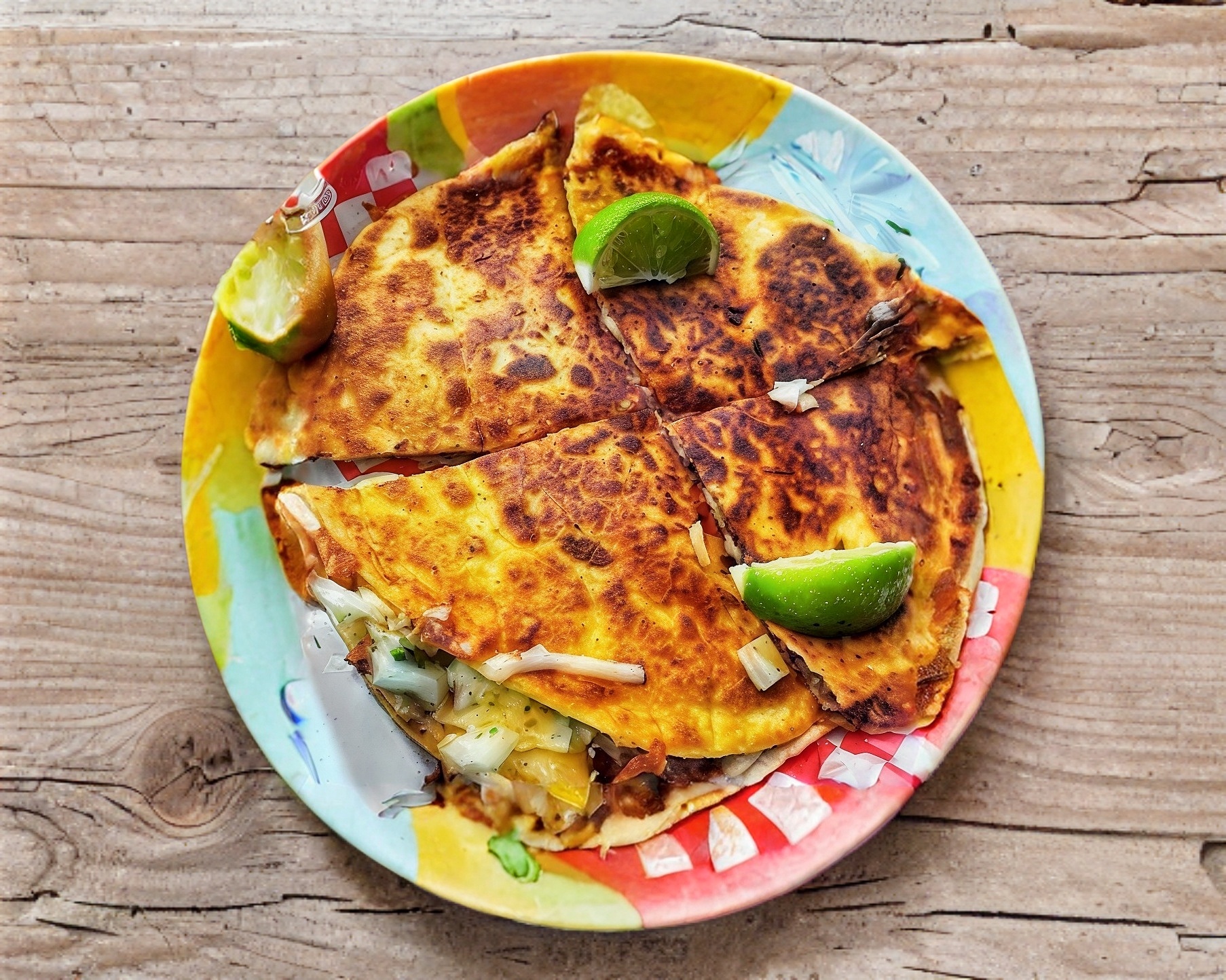 cebolla, cilantro, limones, salsa queso