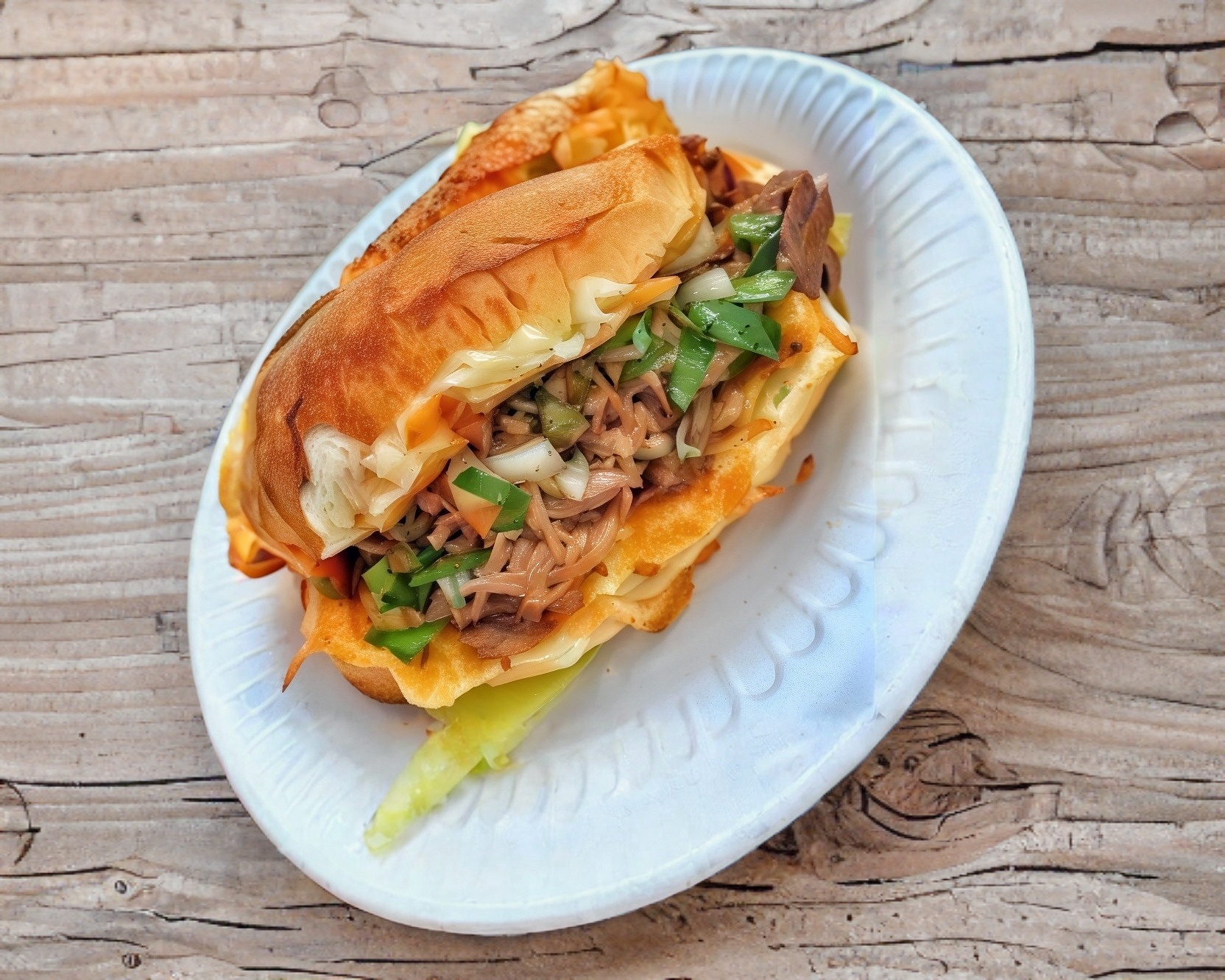 Torta campechana con queso cebolla cilantro.