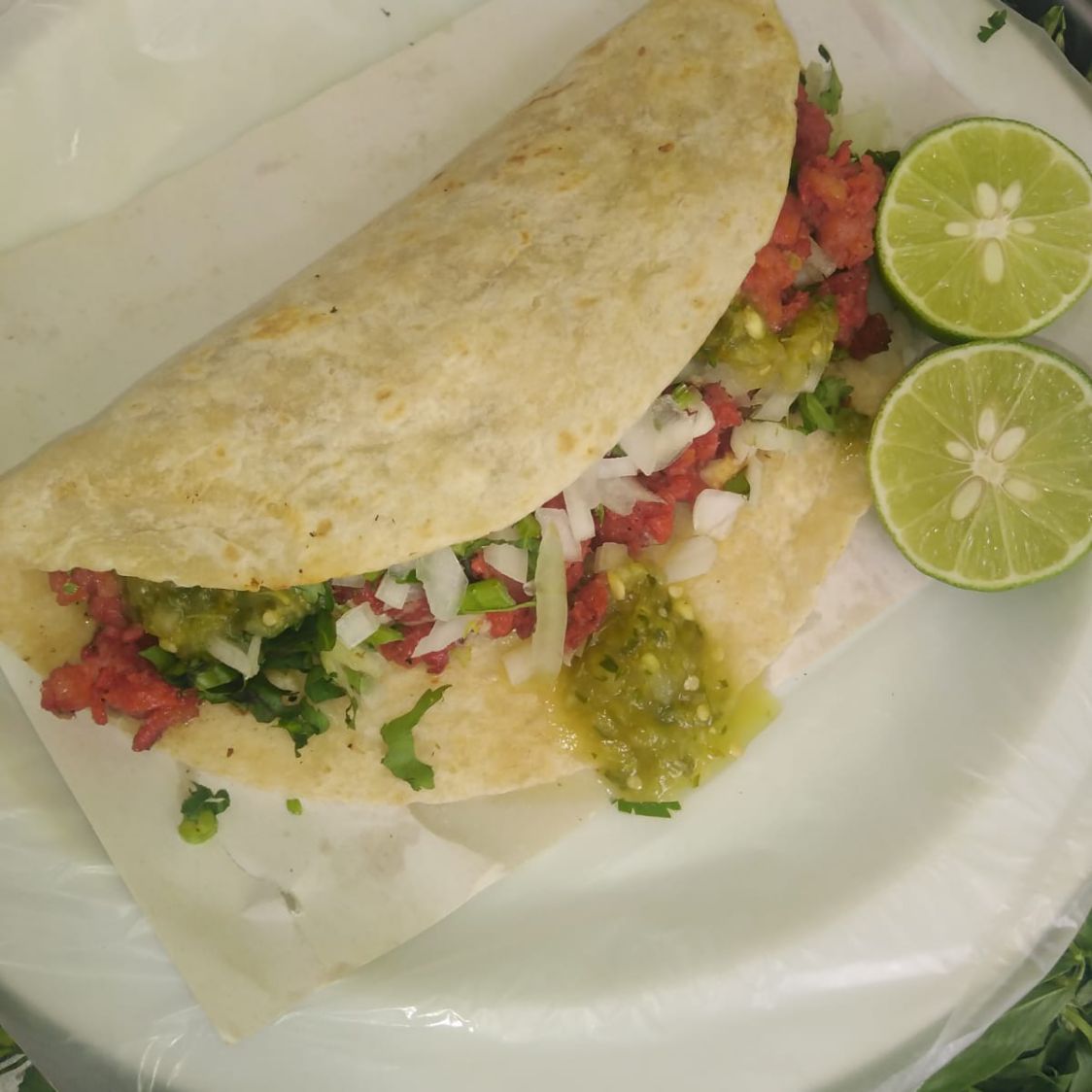 Cebolla, cilantro, limones, salsa, 6 tortillas.