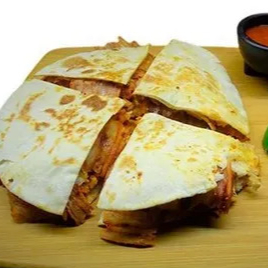 Deliciosa carne al pastor envuelta en queso servida sobre tortilla de harina de tamaño estándar.