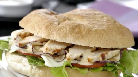 Deliciosa torta de pollo en bolillo de tamaño normal