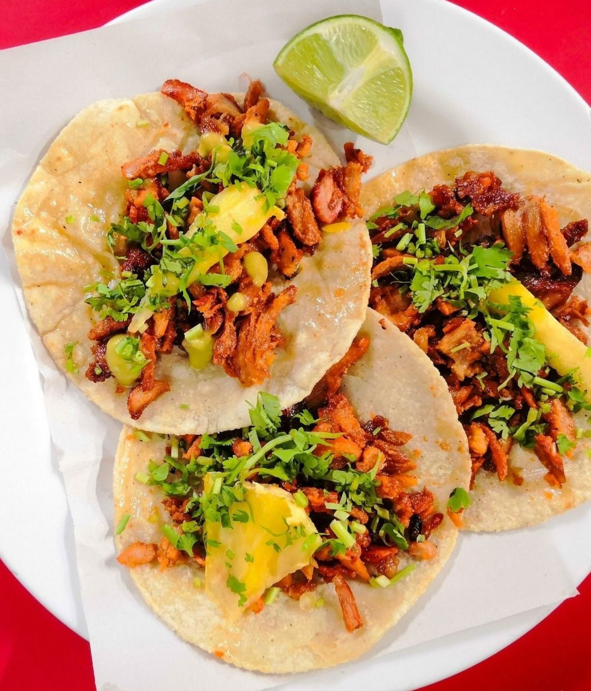 Delicioso taquito de carne al pastor en tortilla taquera del número 10.