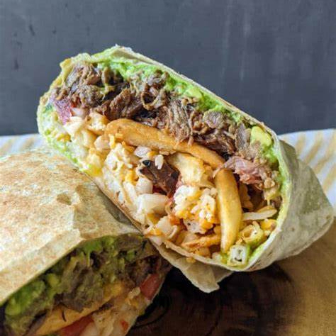 Tortilla de Harina de 28cm, con Frijoles, Queso GOUDA Gratinado, carne de Suadero de Res, Acompañado de cebollas y nopales cocinados con orégano.