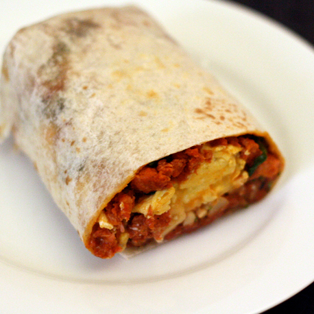 1 TORTILLA DE HARINA DE 30 CM CON FRIJOLES Y QUESO GRATINADO CHORIZO TIPO ARGENTINO, ACOMPAÑADO DE CEBOLLAS Y NOPALES.