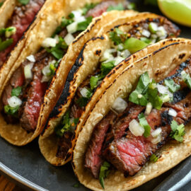2 TORTILLAS DE MAIZ CON ARRACHERA, CEBOLLAS Y NOPAÑES.