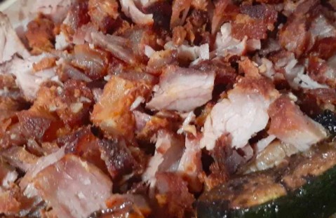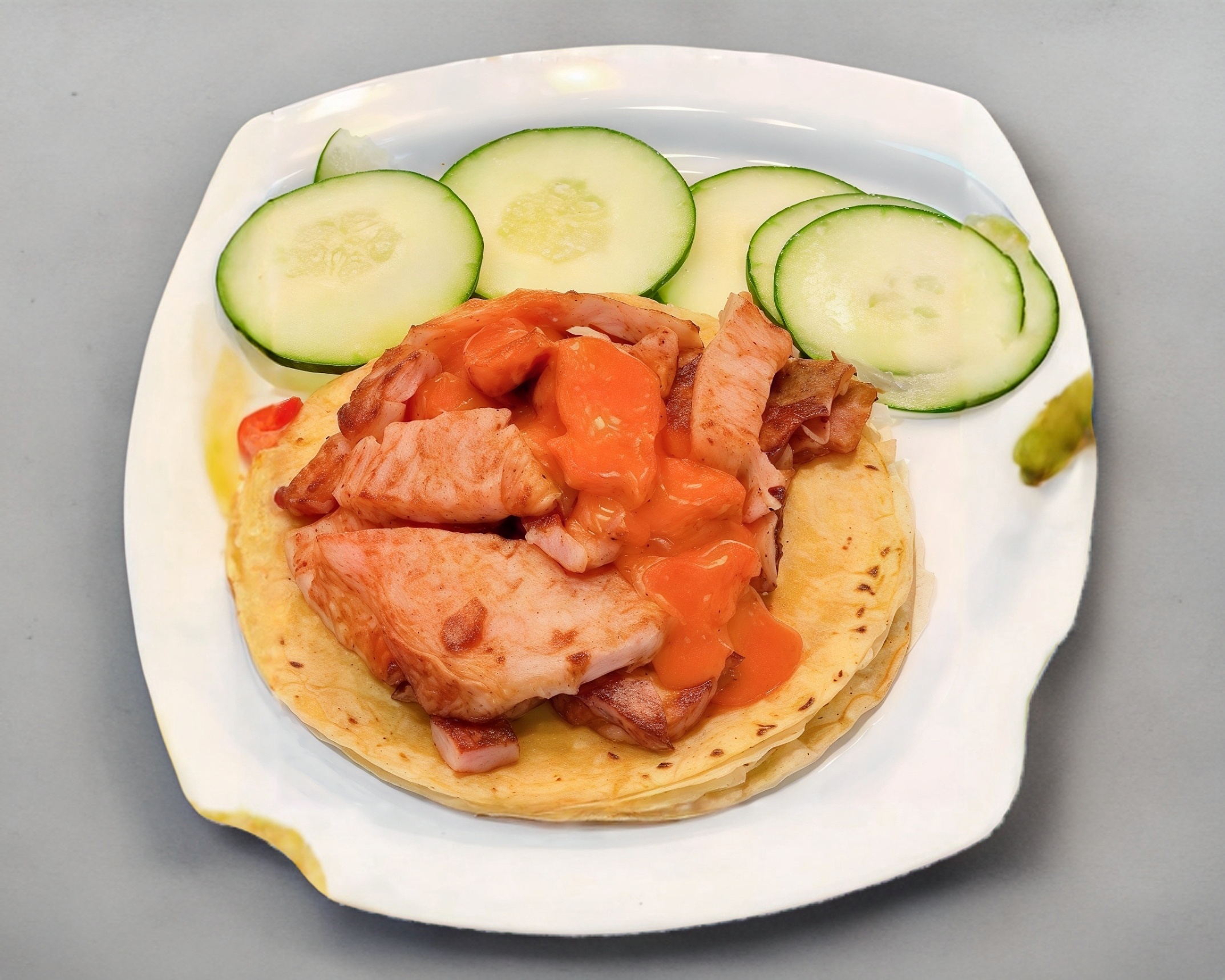 Chuleta, piña y queso, en tortilla de harina.