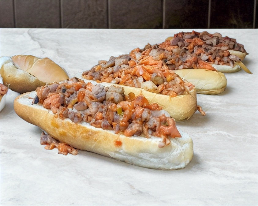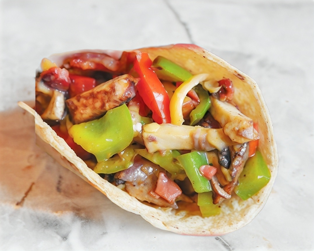 Chile morrón, cebolla rallada, queso, carne y 8 tortillas.