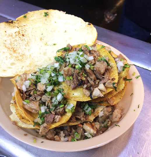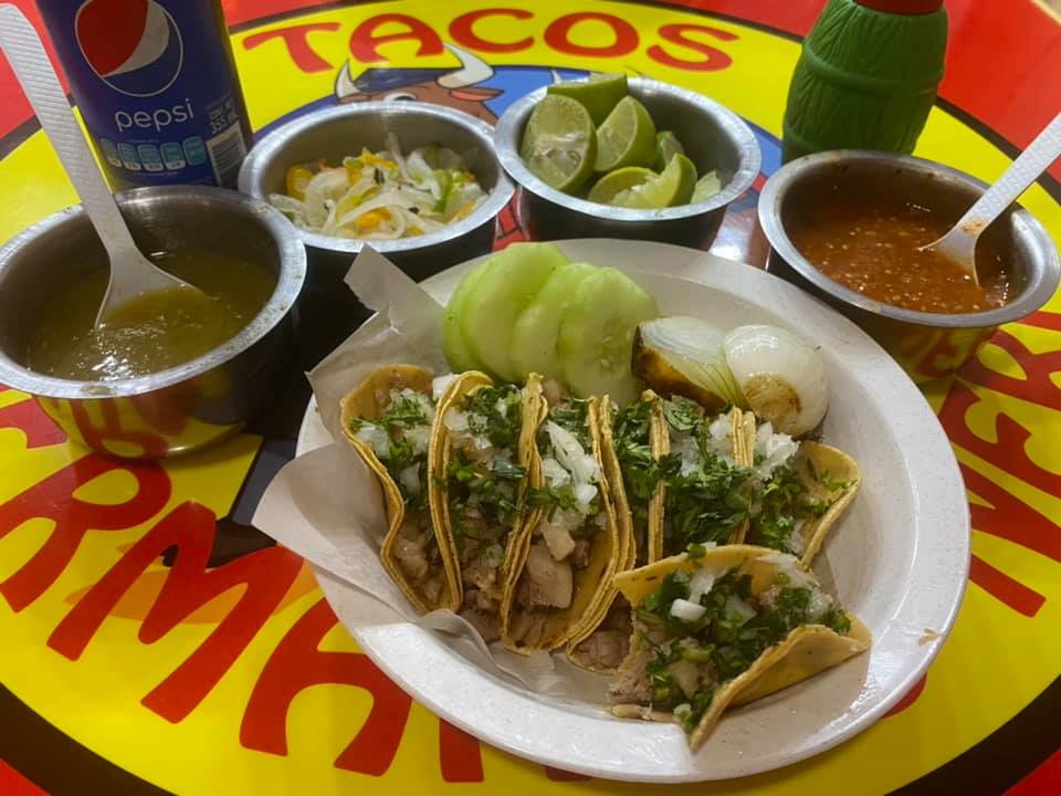 Orden de 5 Tacos*2 con Limones, cilantro, cebolla y salsa roja