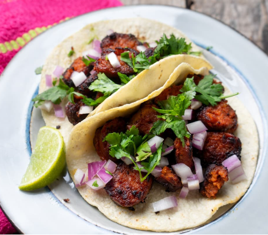 Orden de 5 deliciosos tacos de longaniza en tortilla taquera del #10