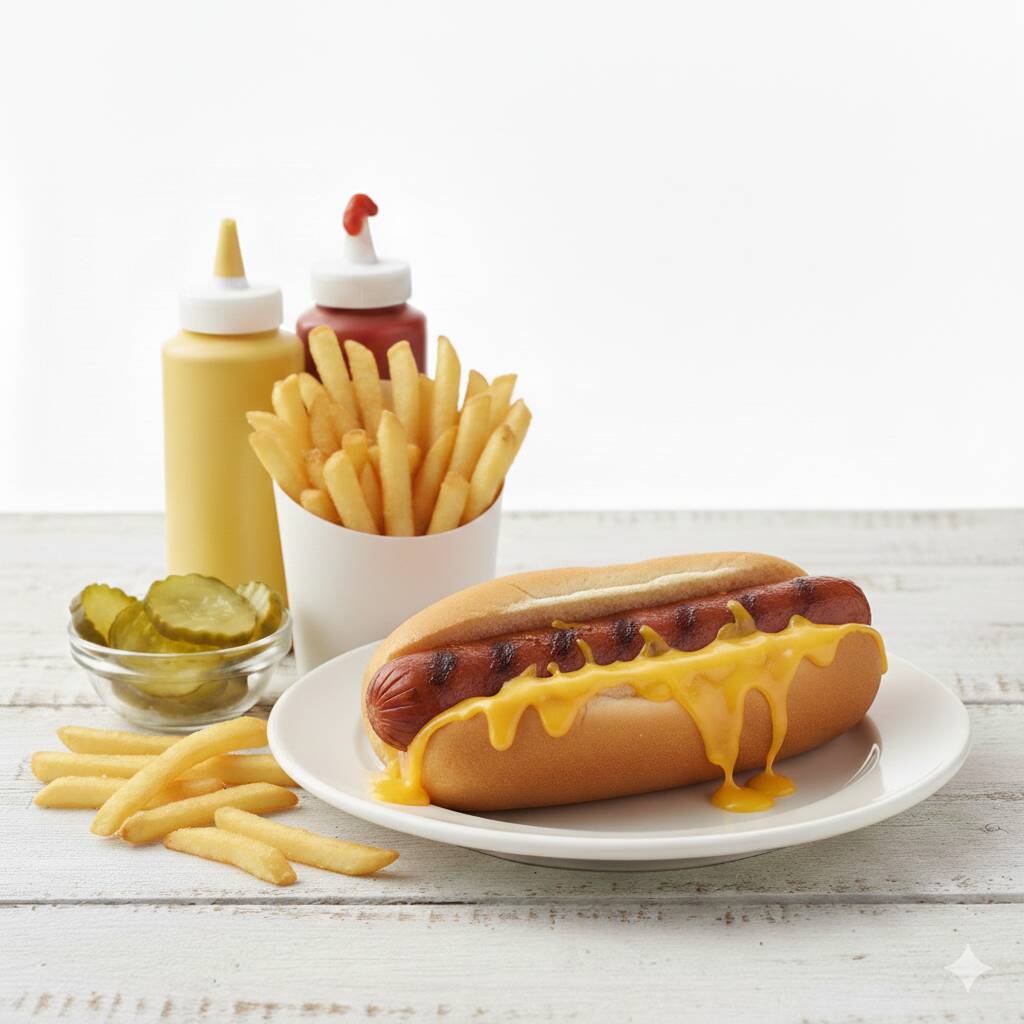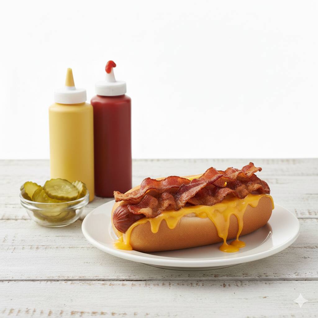 Hot dog con tocino y queso, una combinación que no falla.