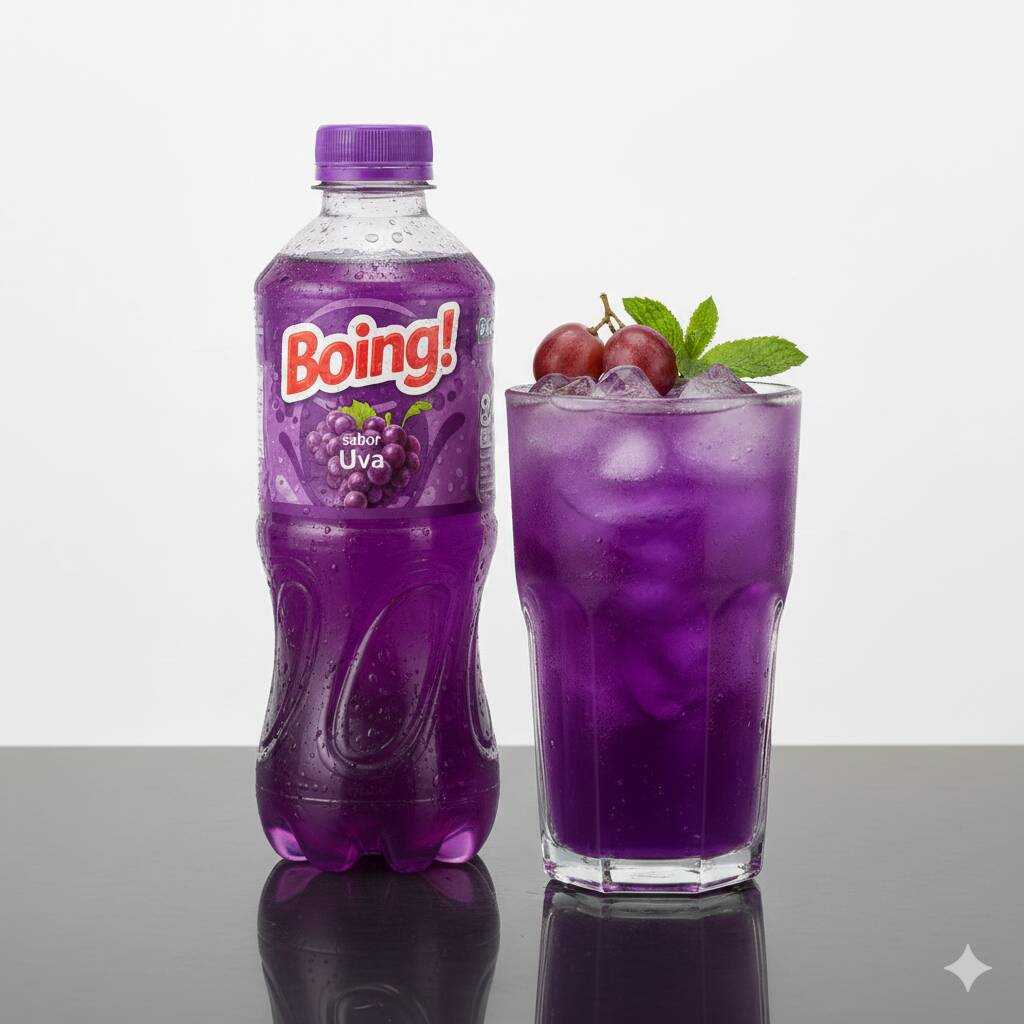Refresco sabor uva, burbujeante y listo para disfrutar.