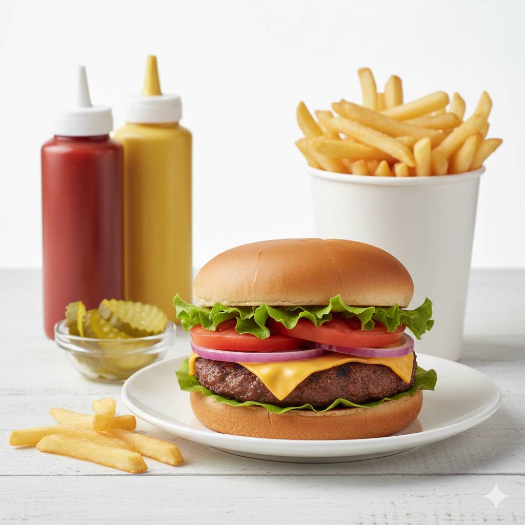 Combo de hamburguesa sencilla con papas, una combinación que no falla.