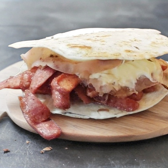 Orden de 3 pz. tocino, queso oaxaca, jitomate, cebolla, cátsup, y rajas
