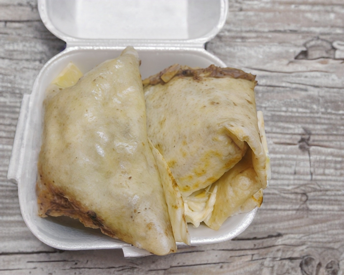 Suadero,Tortilla de harina, carne de tu preferencia, queso Oaxaca, salsa, limones y papas ala francesa ( porción personal)