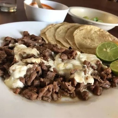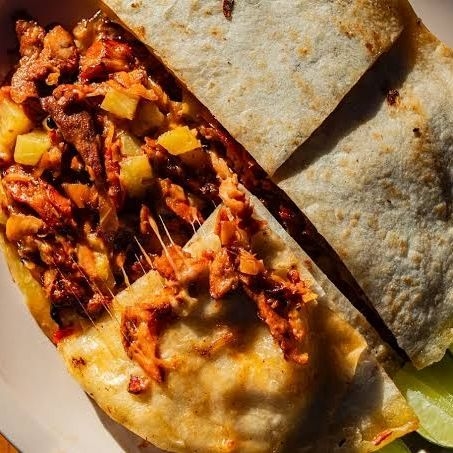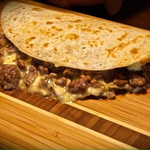 Preparado con 3 tortillas de harina, carne de suadero con longaniza , acompañado de cebolla, cilantro