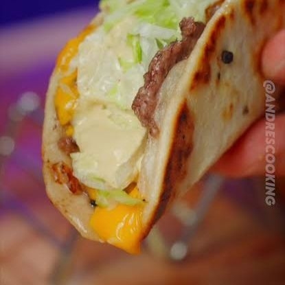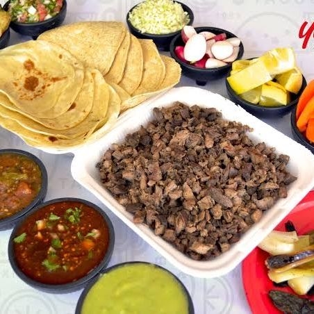 Preparado con 3 tortillas de harina, carne de suadero , acompañado de cebolla, cilantro