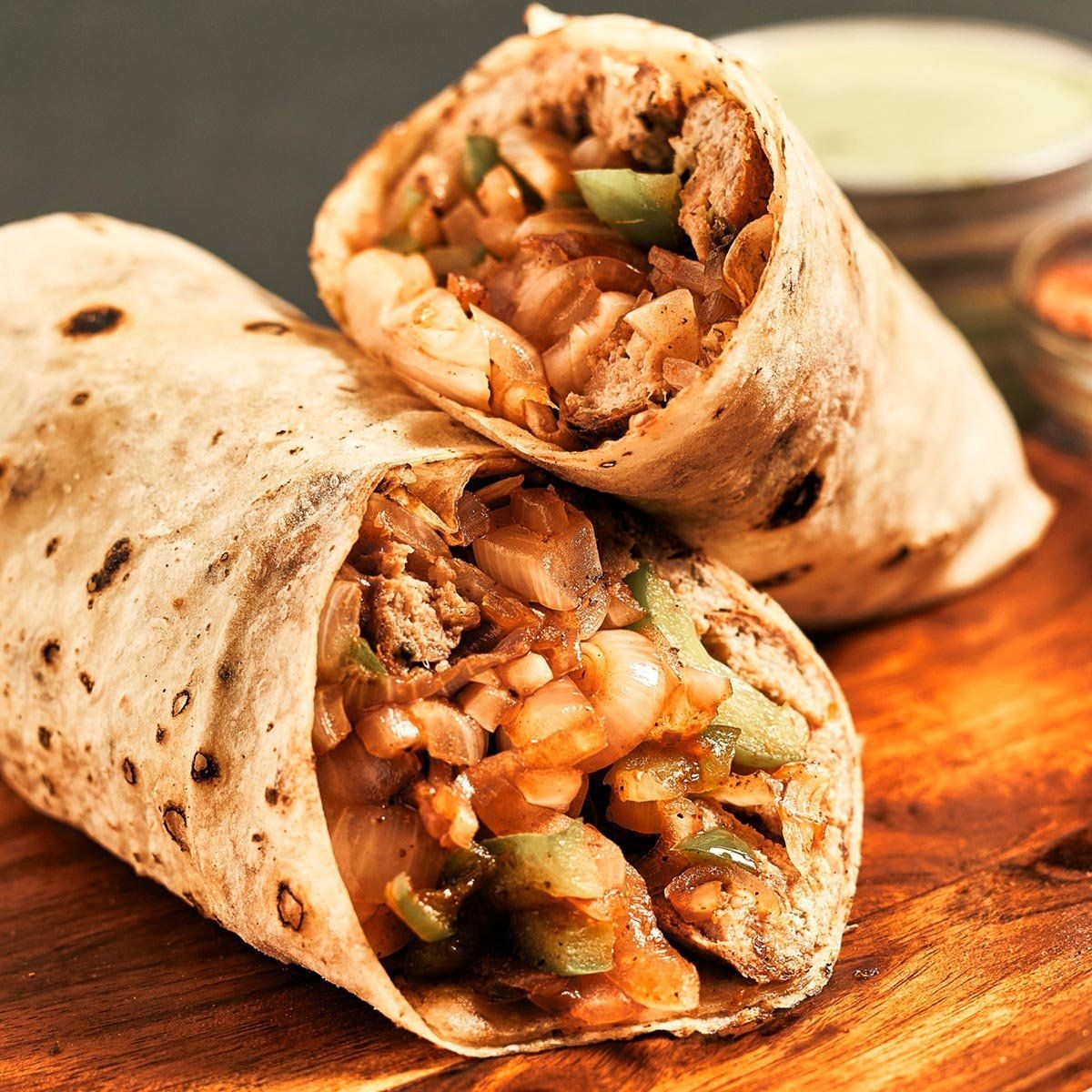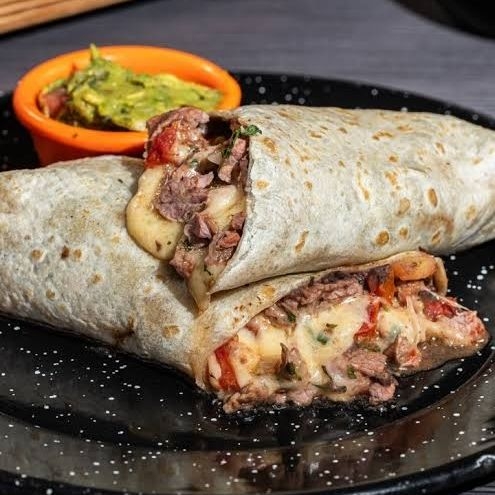 Porción de arrachera envuelto con tortilla de harina para burrito