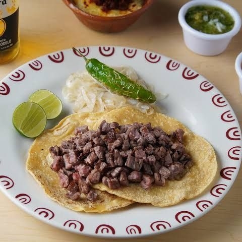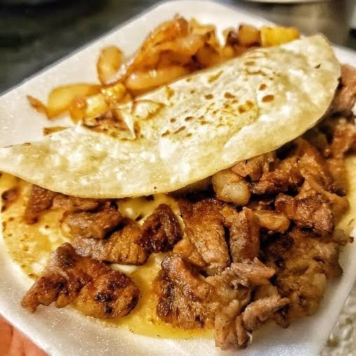 Preparado con 3 tortillas de harina, carne de bistec , acompañado de cebolla, cilantro.