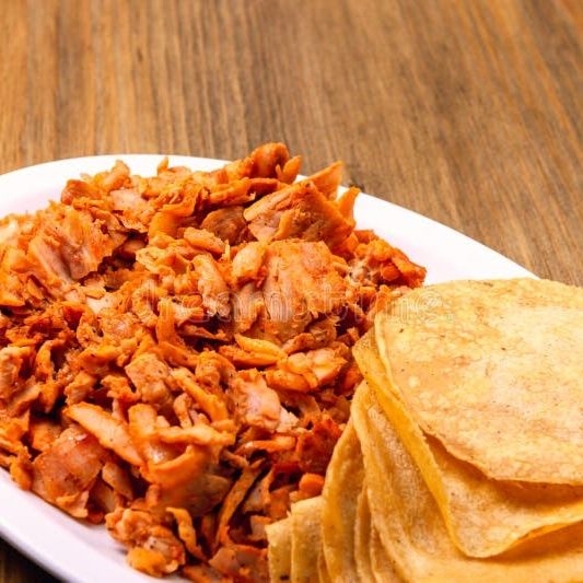 Una porción de carne de pastor, acompañado de 7 tortillas dobles de maiz,