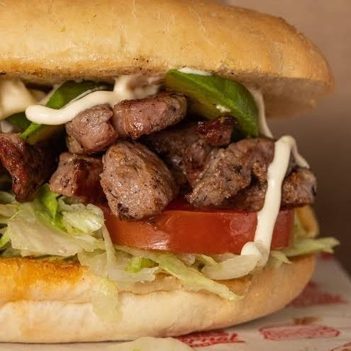 Rica torta de bistec con telera mediana acompañado de Jitomate, aguacate,