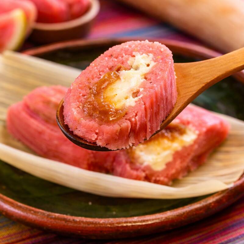 Delicioso tamalito de guayaba con queso Philadelphia, relleno de mermelada artesanal de guayaba, una combinación perfecta para un sabor dulce y único.