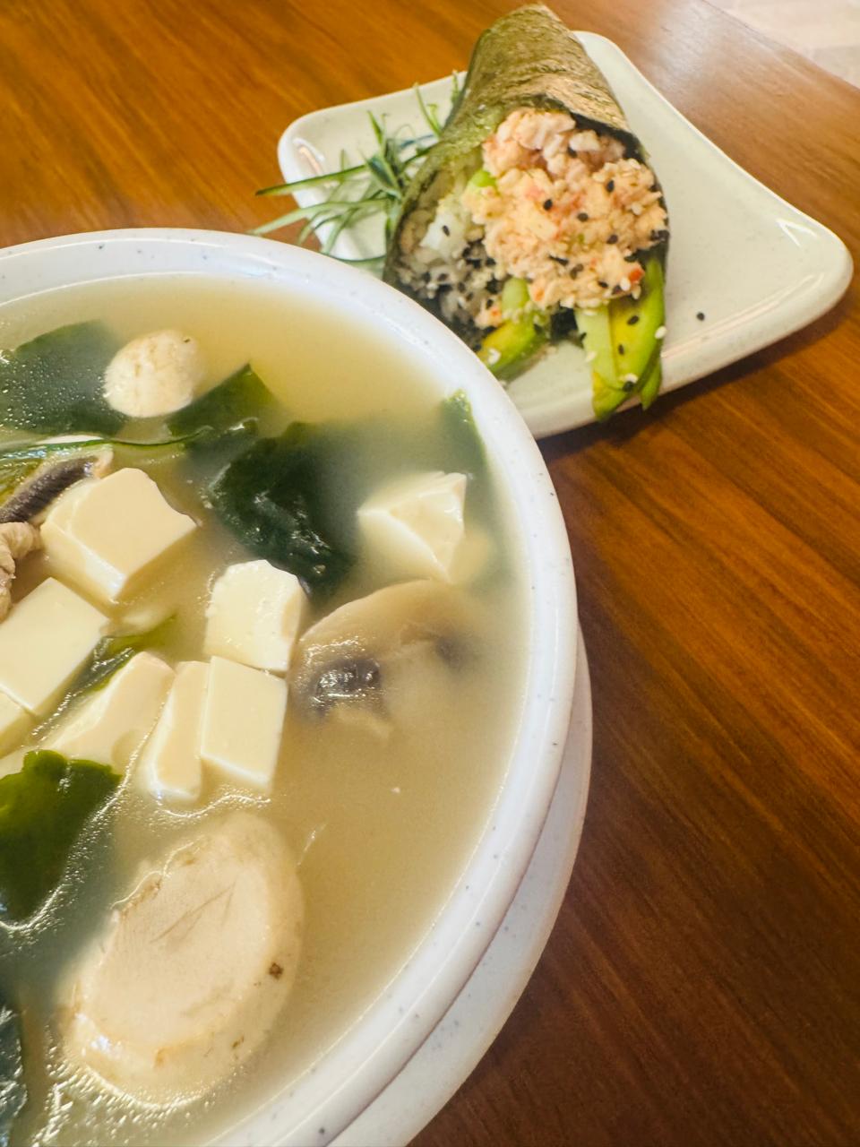 1 Sopa Miso (Caldo suave sabor Miso, cubos de tofu y alga) + 1 Cono Tampico.