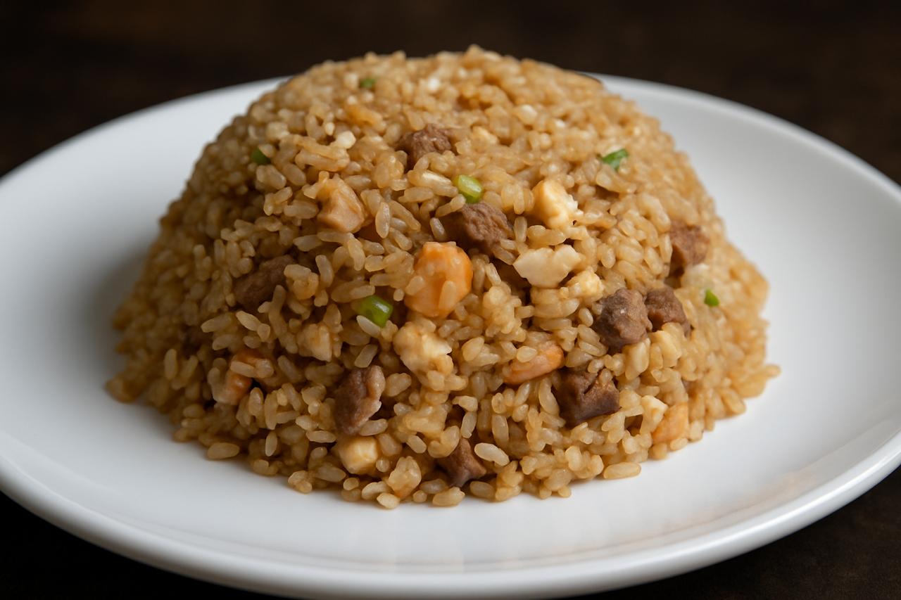 Porción de Yakimeshi (arroz frito) + 2 piezas de brochetas + 1 sushi a elejir