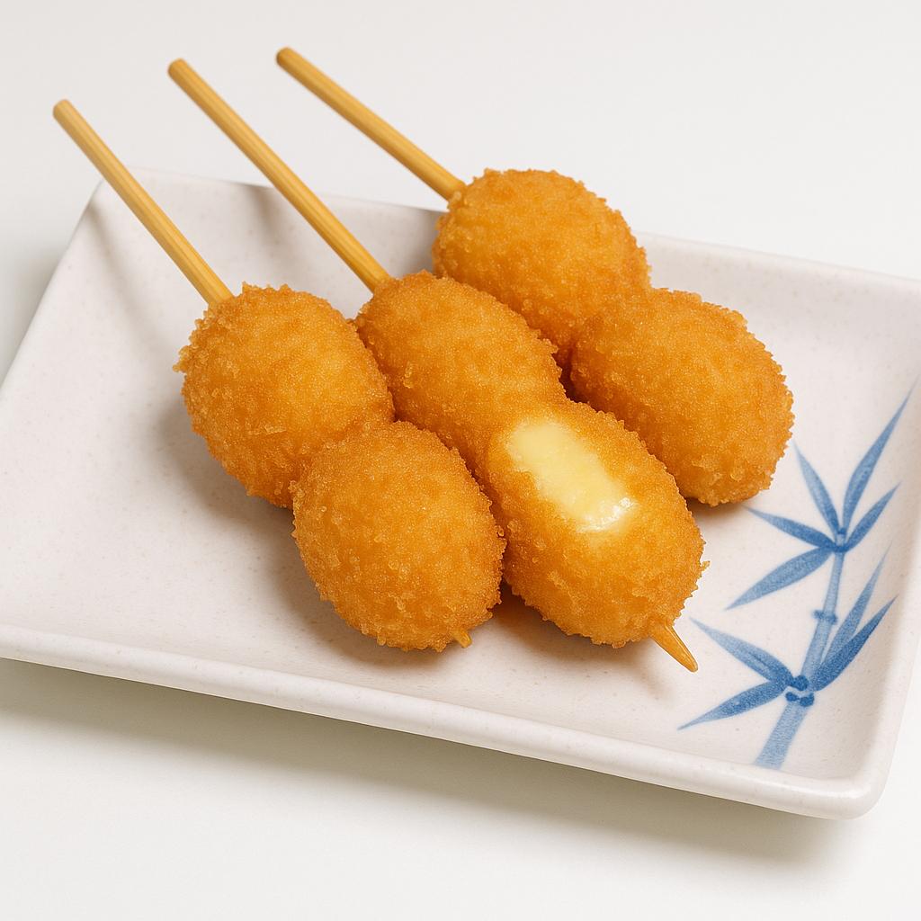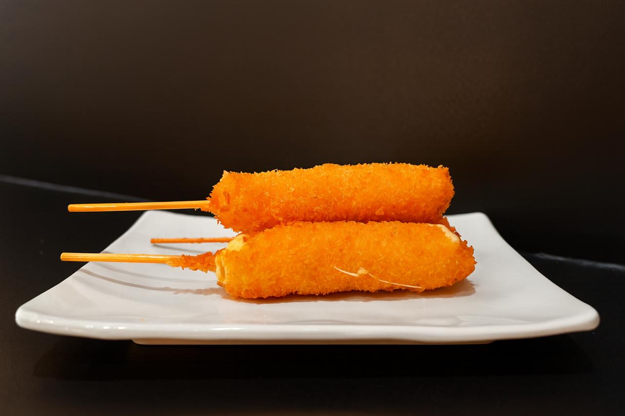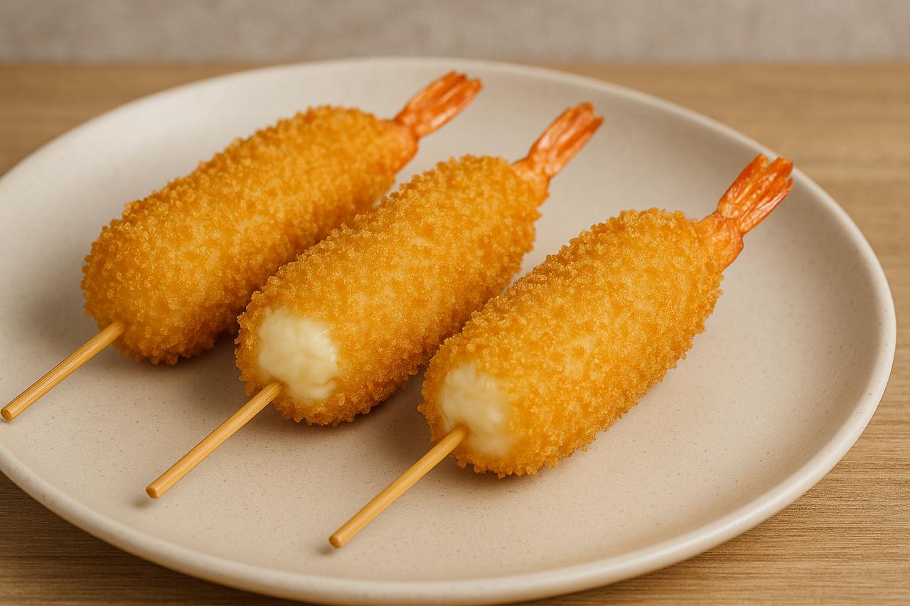 Brocheta empanizada de camarón con queso manchego o philadelphia