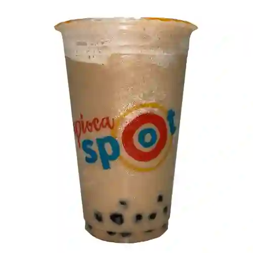 Bebida de 16 oz a basé de té negro con leche con temperatura, nivel de tapioca y popping/Jelly a elegir.