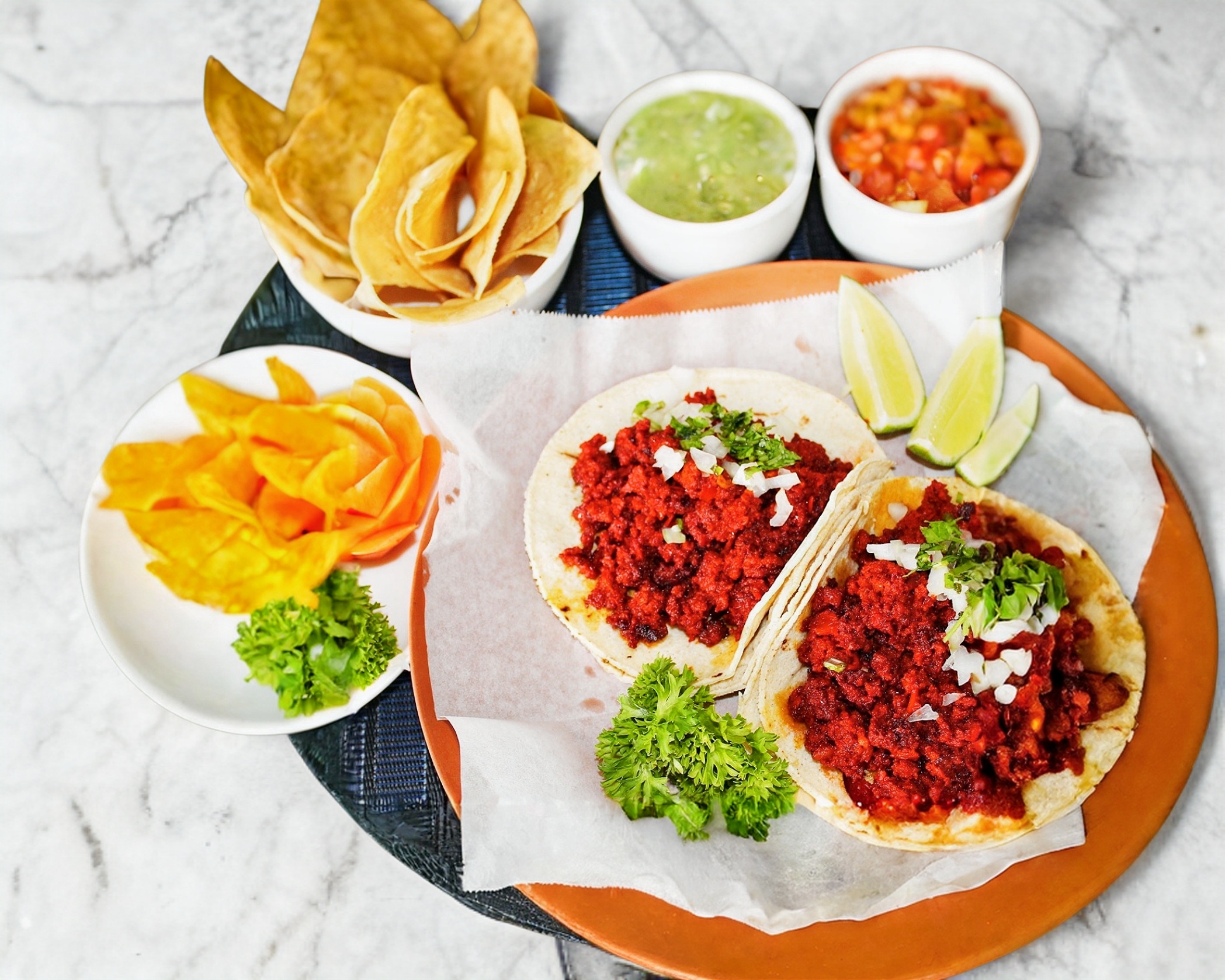 Tres tortillas en fila + pastor + pastor + pastor y coronado con queso!