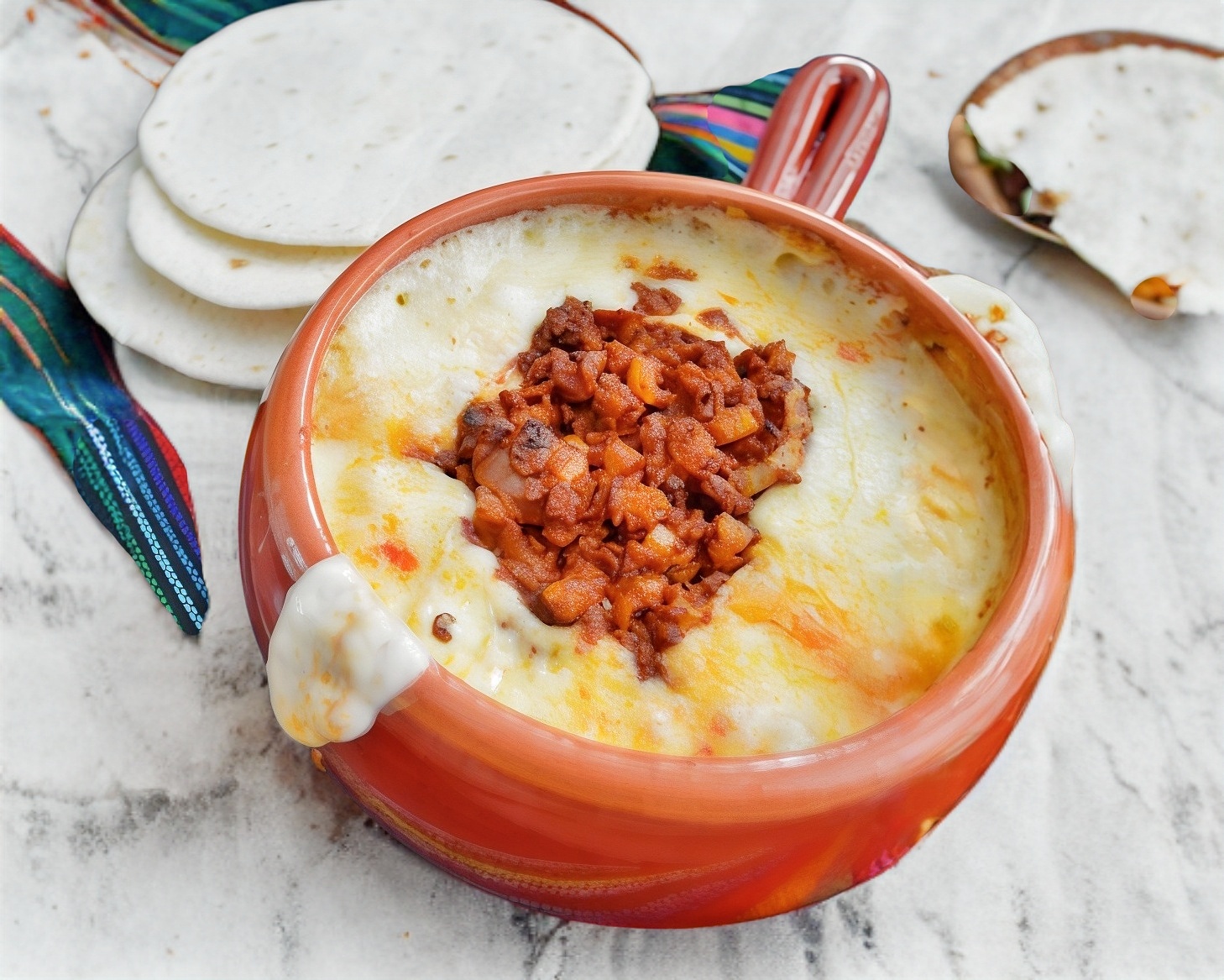 Delicioso queso fundido con chorizo, preparado con queso derretido y chorizo dorado y lleno de sabor. Perfecto para disfrutar con tortillas de maíz o harina y armar los mejores tacos. ¡Un clásico irresistible para compartir! 🤤✨