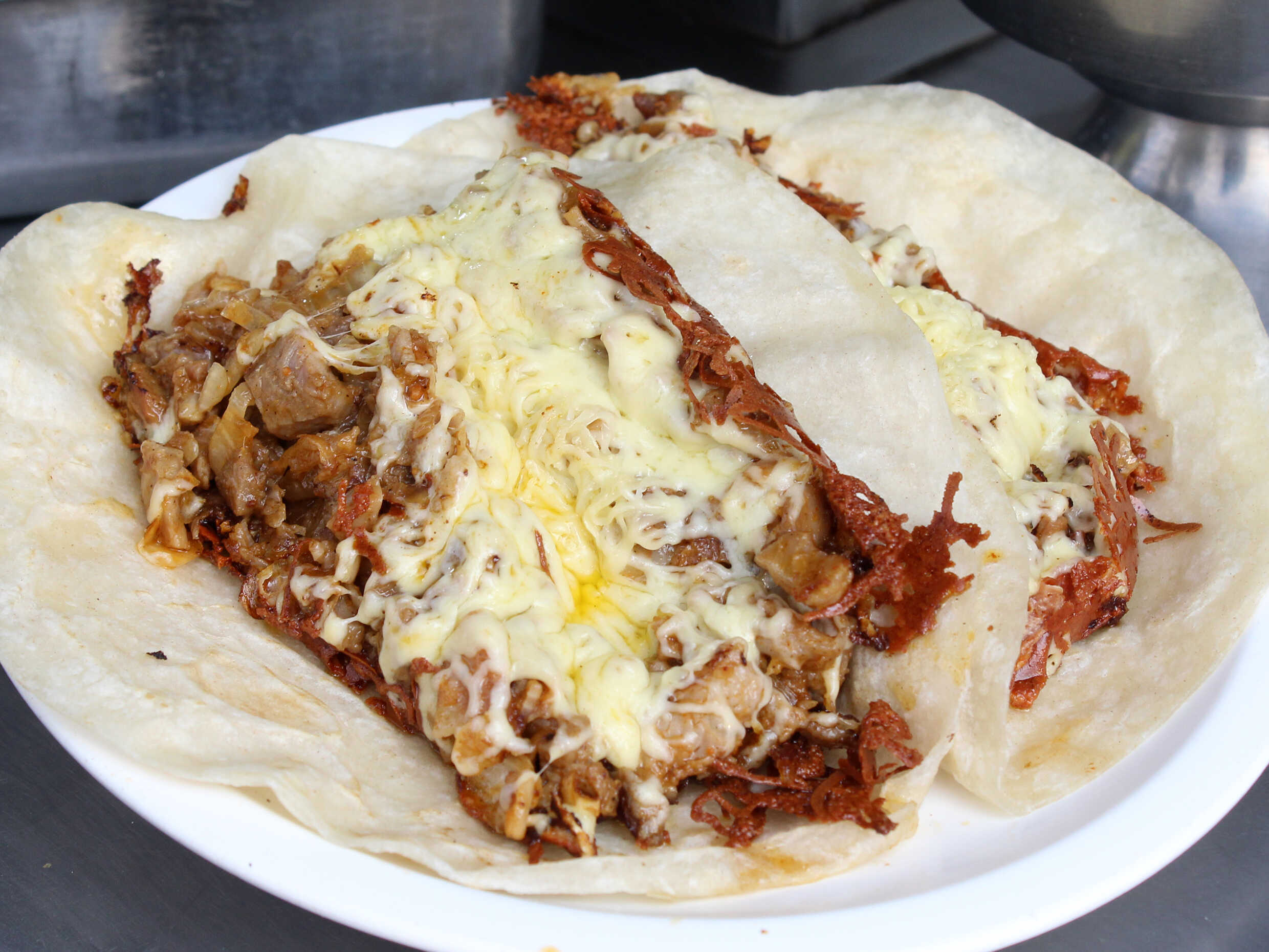 Suadero de res, queso y tortilla de harina.