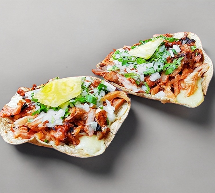 Carne al pastor con piña y queso fundido.