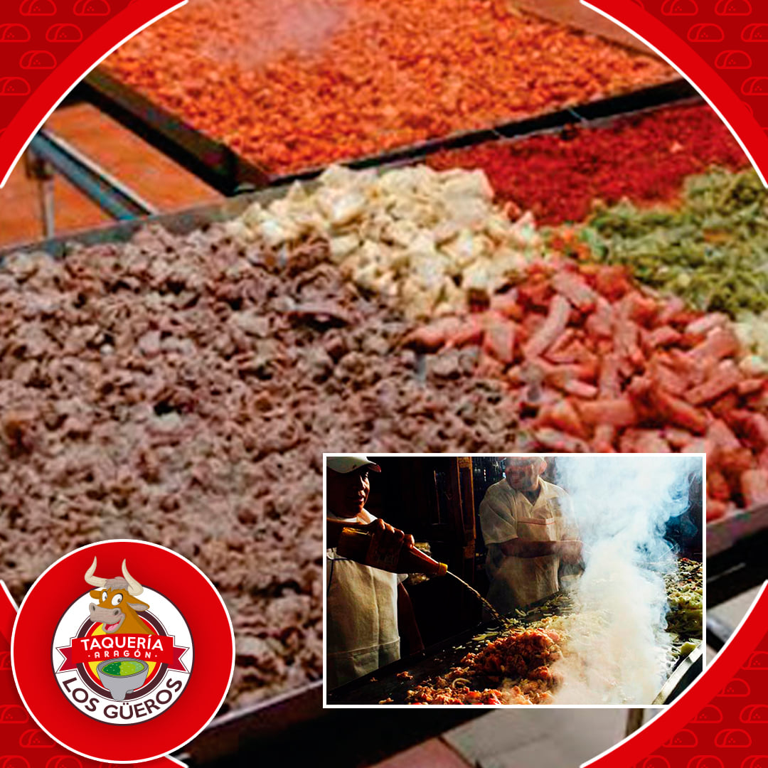 Bistec de res, bistec de cerdo, chorizo, tocino, cebolla y queso fundido.
