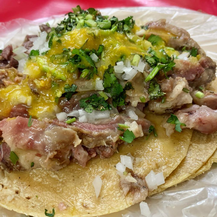 Taco de costilla de res, servido en tortilla grande de maíz o harina a elegir.