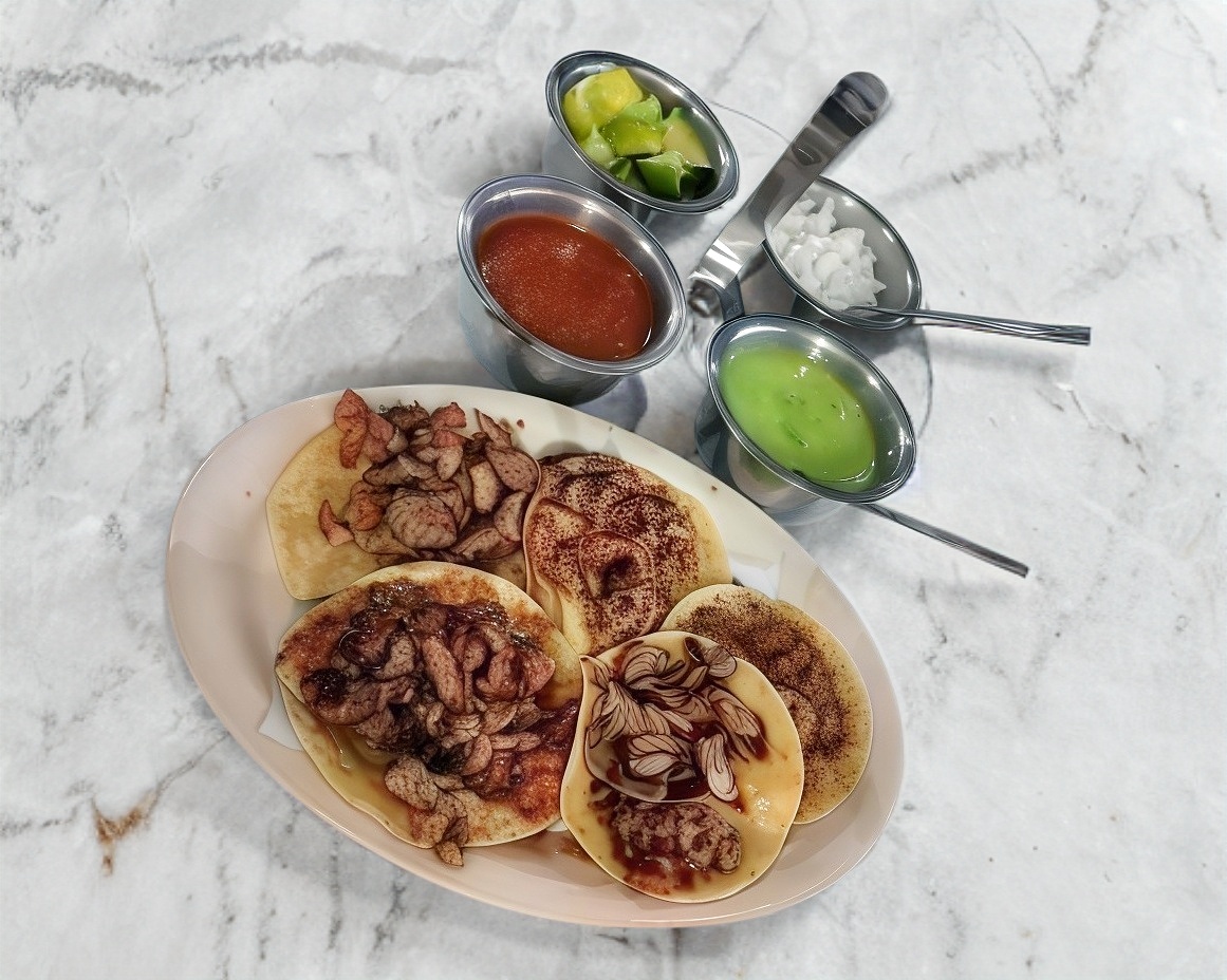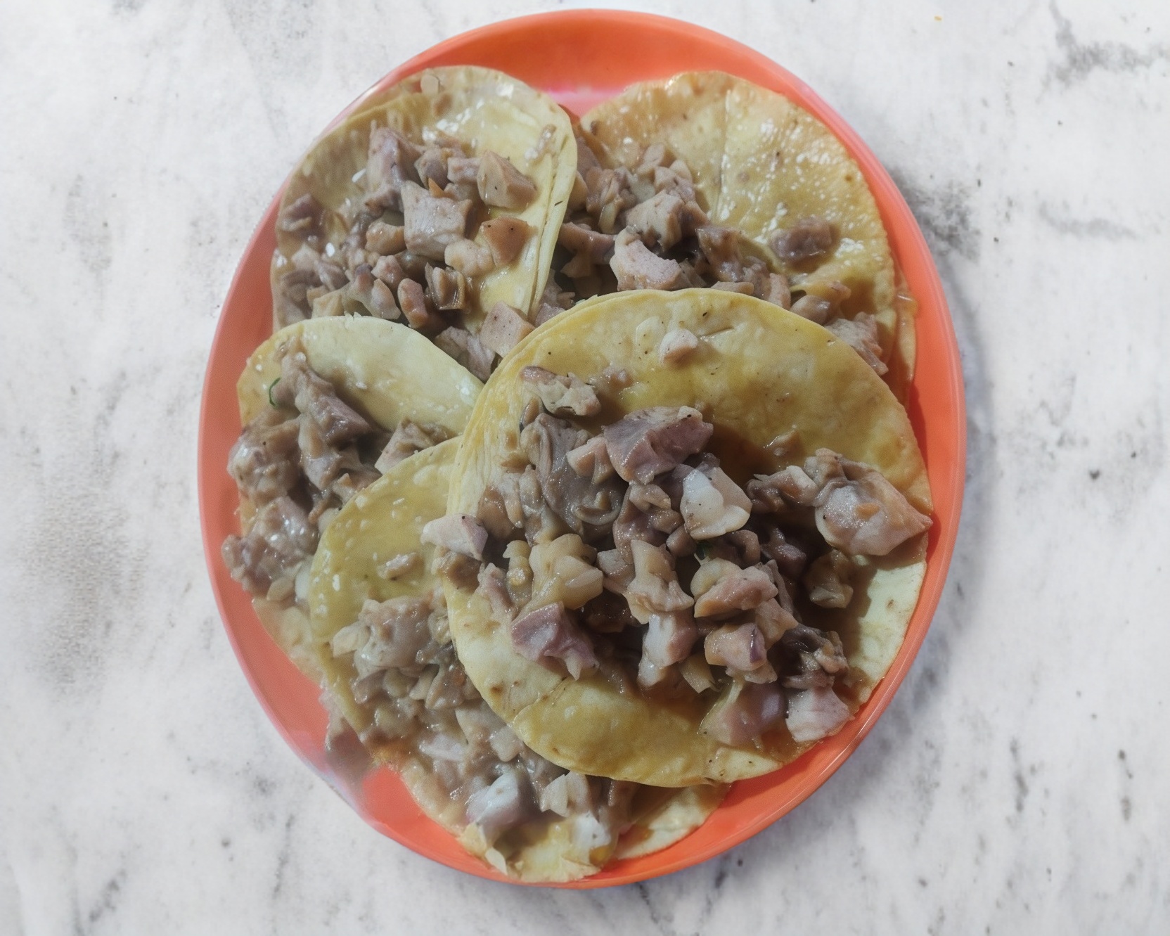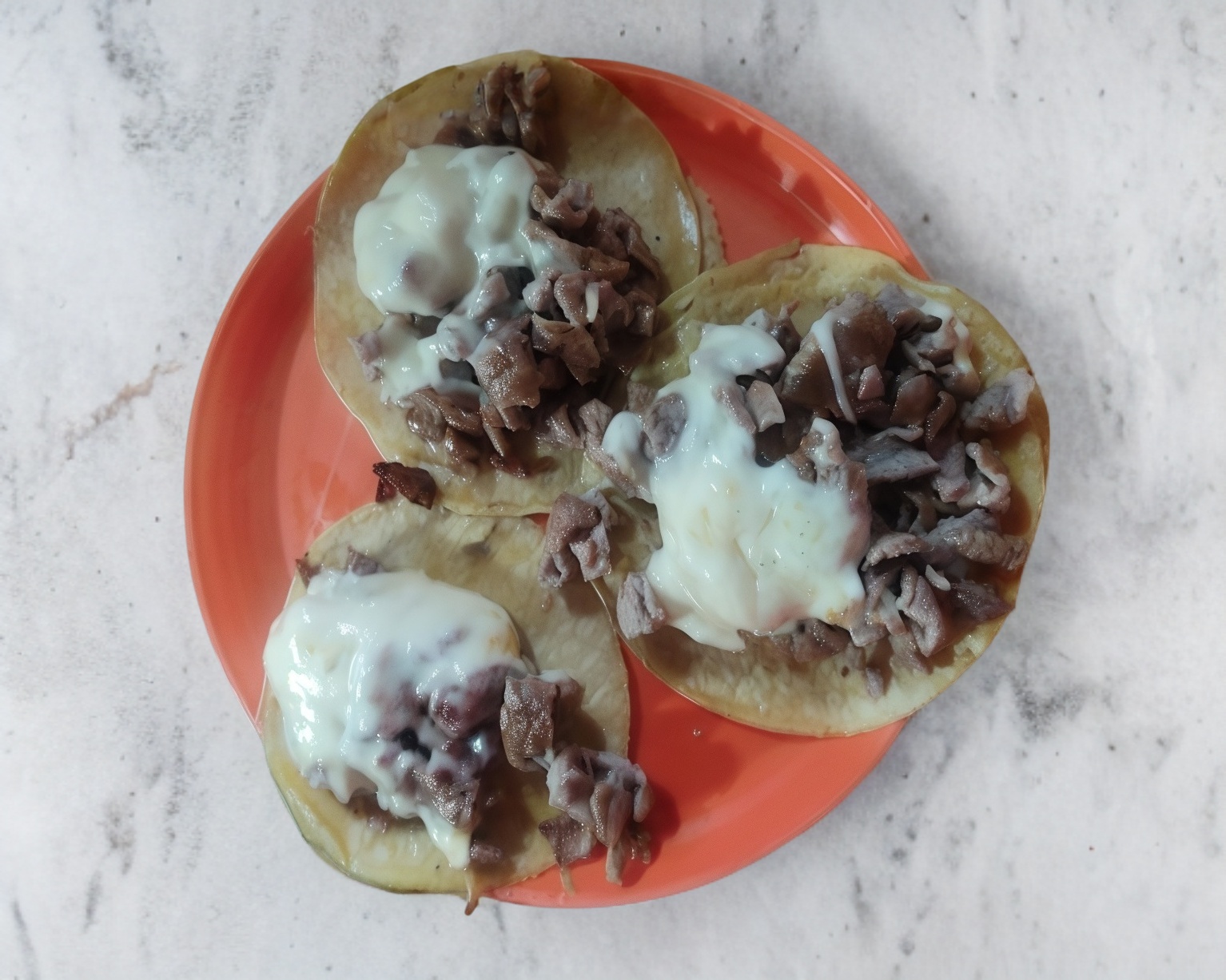 Orden de 3 tacos a elegir (bistec con queso, costilla con queso ó chuleta con queso).