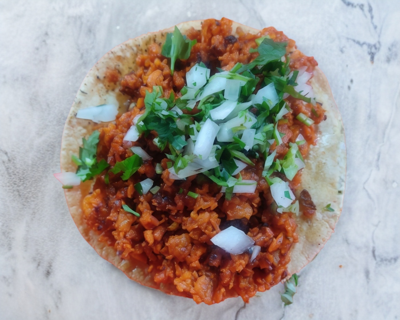 Orden de 10 pzas tortilla chica, pastor, verdura y salsa a elegir.