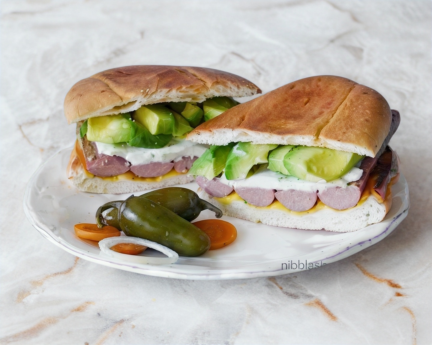 Jamón, quesillo y queso amarillo, lechuga, jitomate, aguacate.