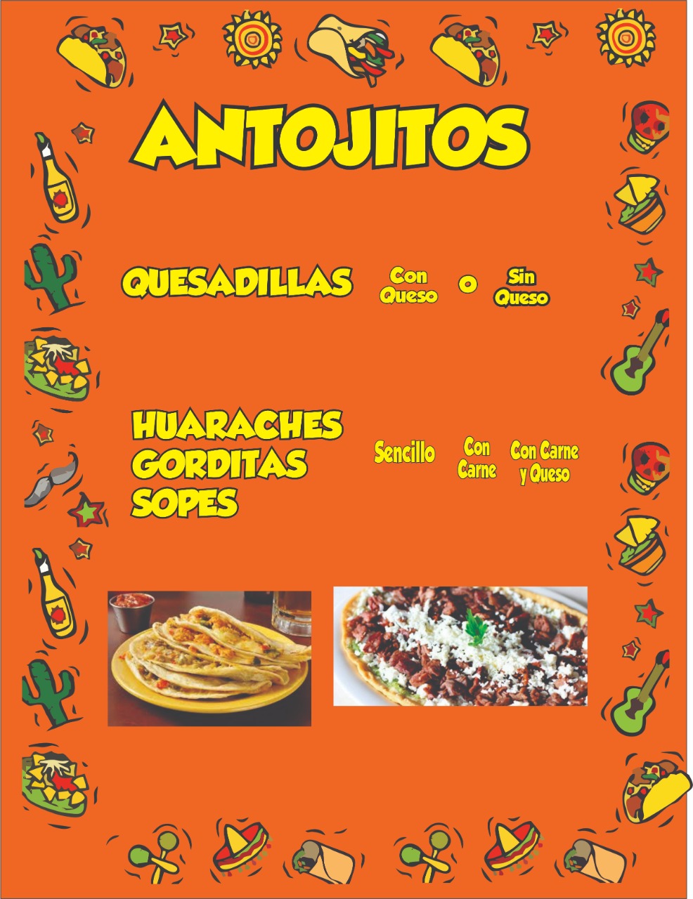 Tortilla ovalada embarrado de frijoles refritos, nopales, crema, queso rallado y la carne de su preferencia.