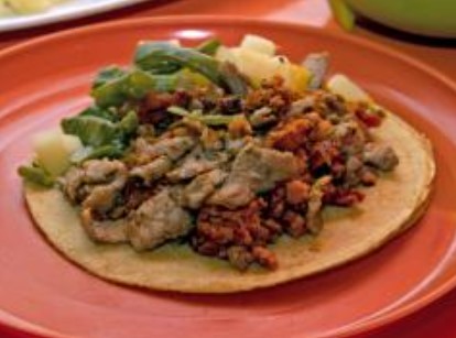 Deliciosa carne al pastor en doble tortilla de harina con queso oaxaca.