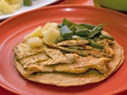 Deliciosa pechuga de pollo asada en doble tortilla de maíz.