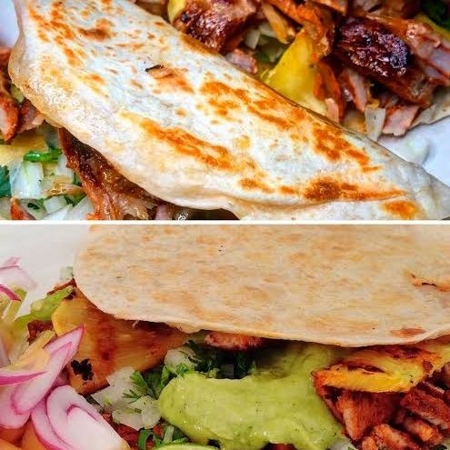 Orden combinado de bistec con pastor, acompañado de 7 tortillas