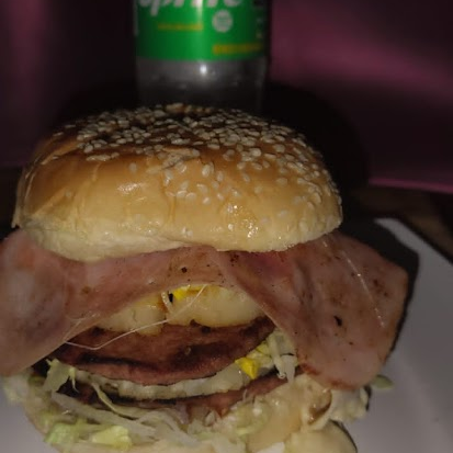 Hamburguesa Hawaiana CARNE ASADA A LA PLANCHA CON PIÑA ASADA JAMON Y NUESTRA COMBINACION DE QUESO MANCHEGO Y OAXACA