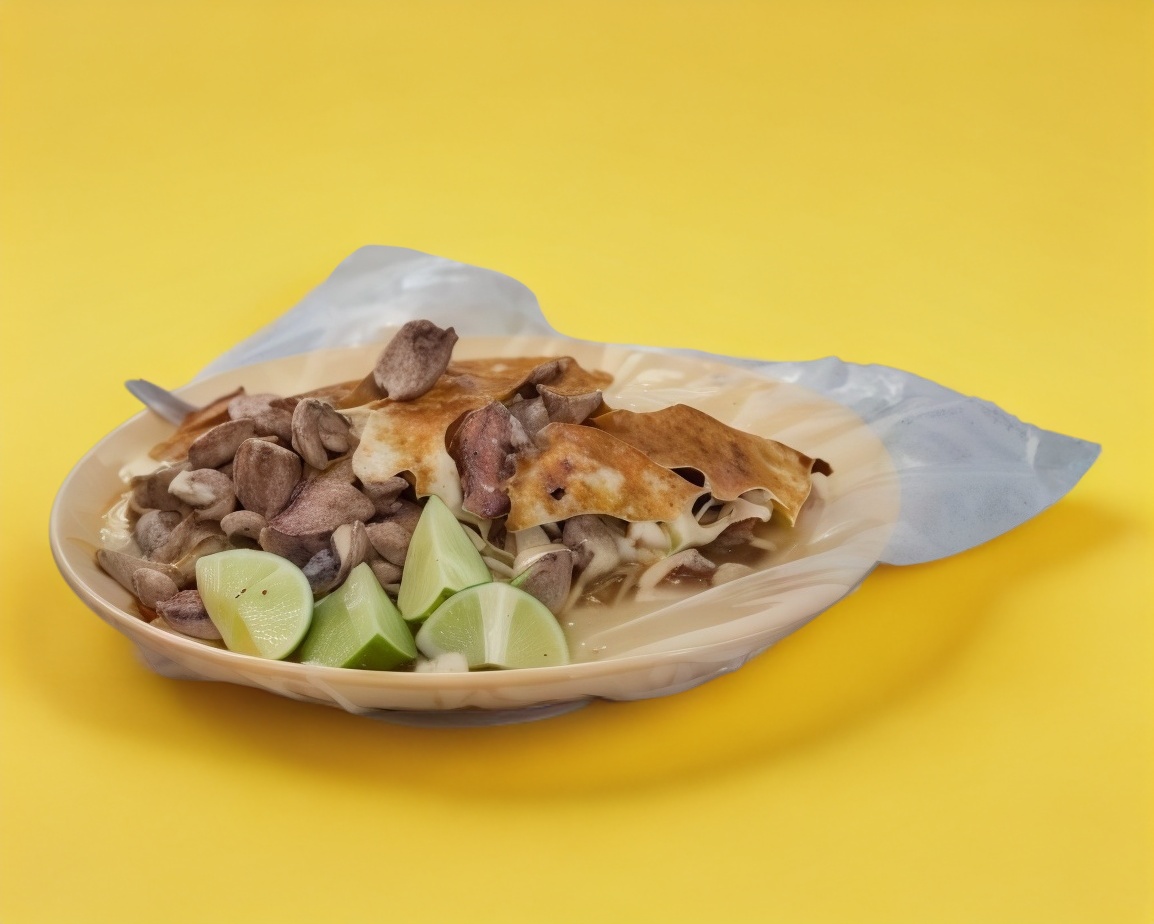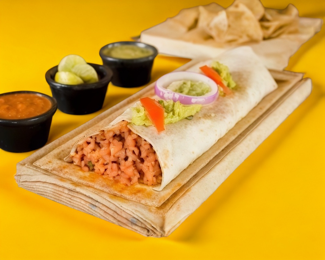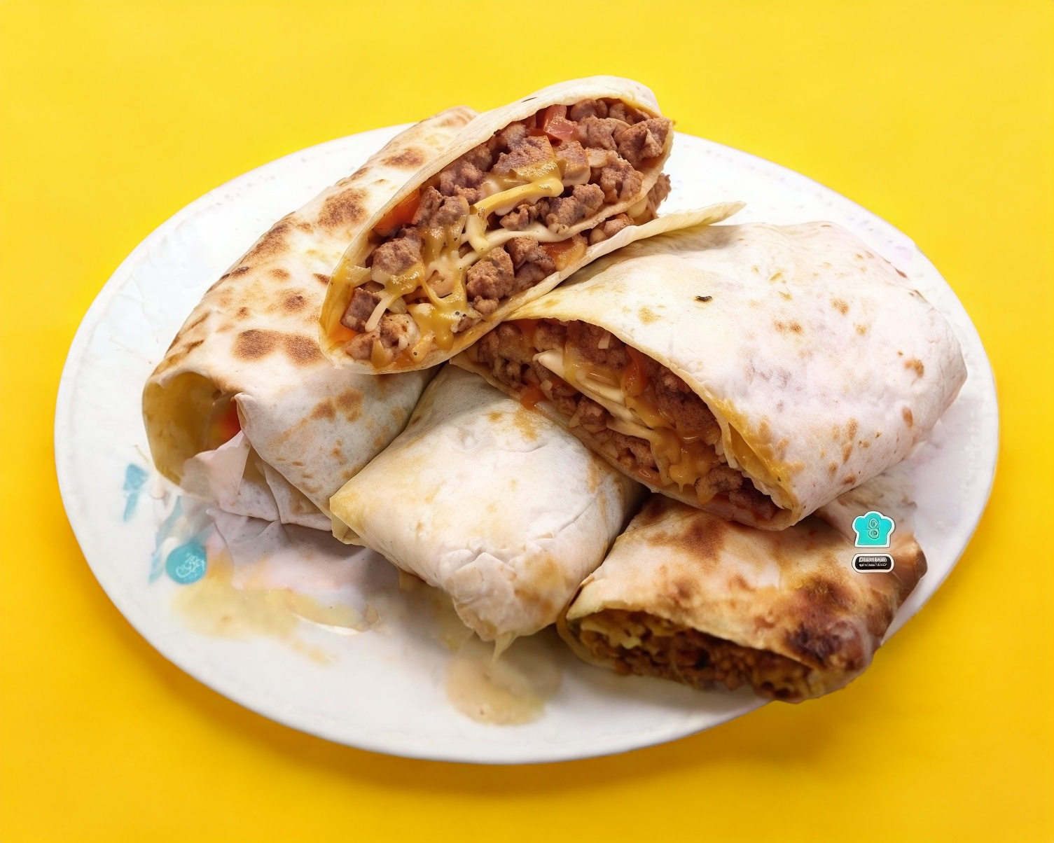(Orden para 2 personas) Bistec, chuleta, tocino, jamón, cebolla, chile cuaresmeño y frijoles refritos envuelto en queso dorado.