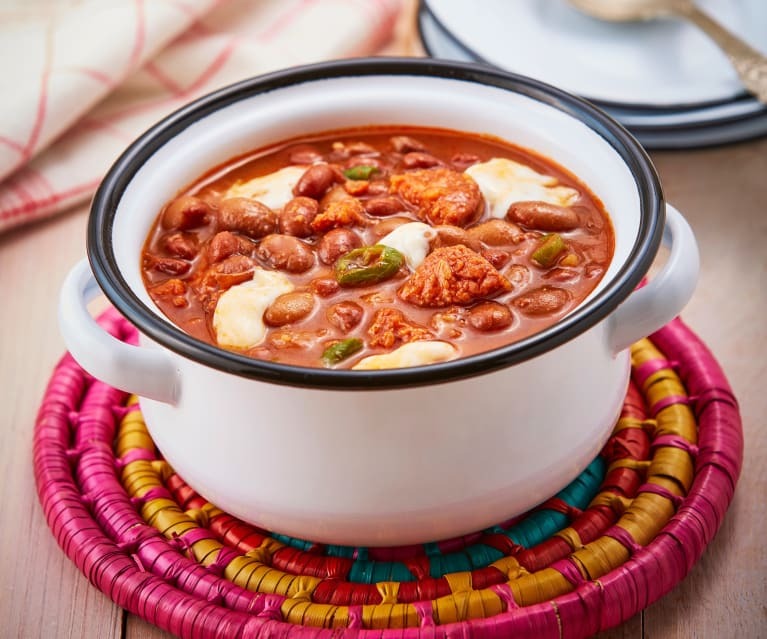 Longaniza, bistec, chile morrón, cebolla y queso gratinado.